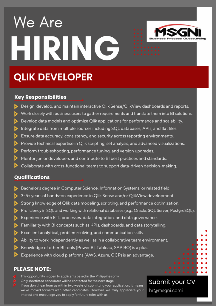Qlik Developer Apply for this position Full Name *Email *Phone *Cover Letter *Upload CV/Resume *Allowed Type(s): .pdf, .docx